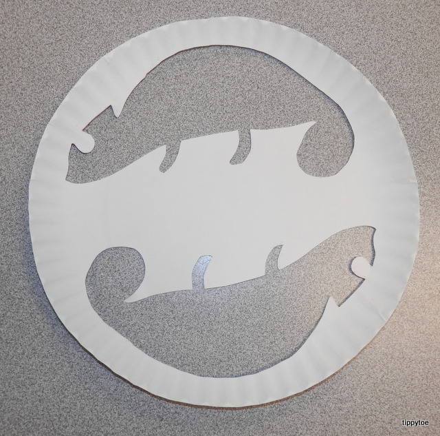 Créez sur une des assiettes une silhouette de caméléon. Trouvez un dessin de caméléon à télécharger et utilisez-le pour créer la silhouette. N’oubliez pas de laisser un espace pour placer l’œil du caméléon. Découpez le caméléon.