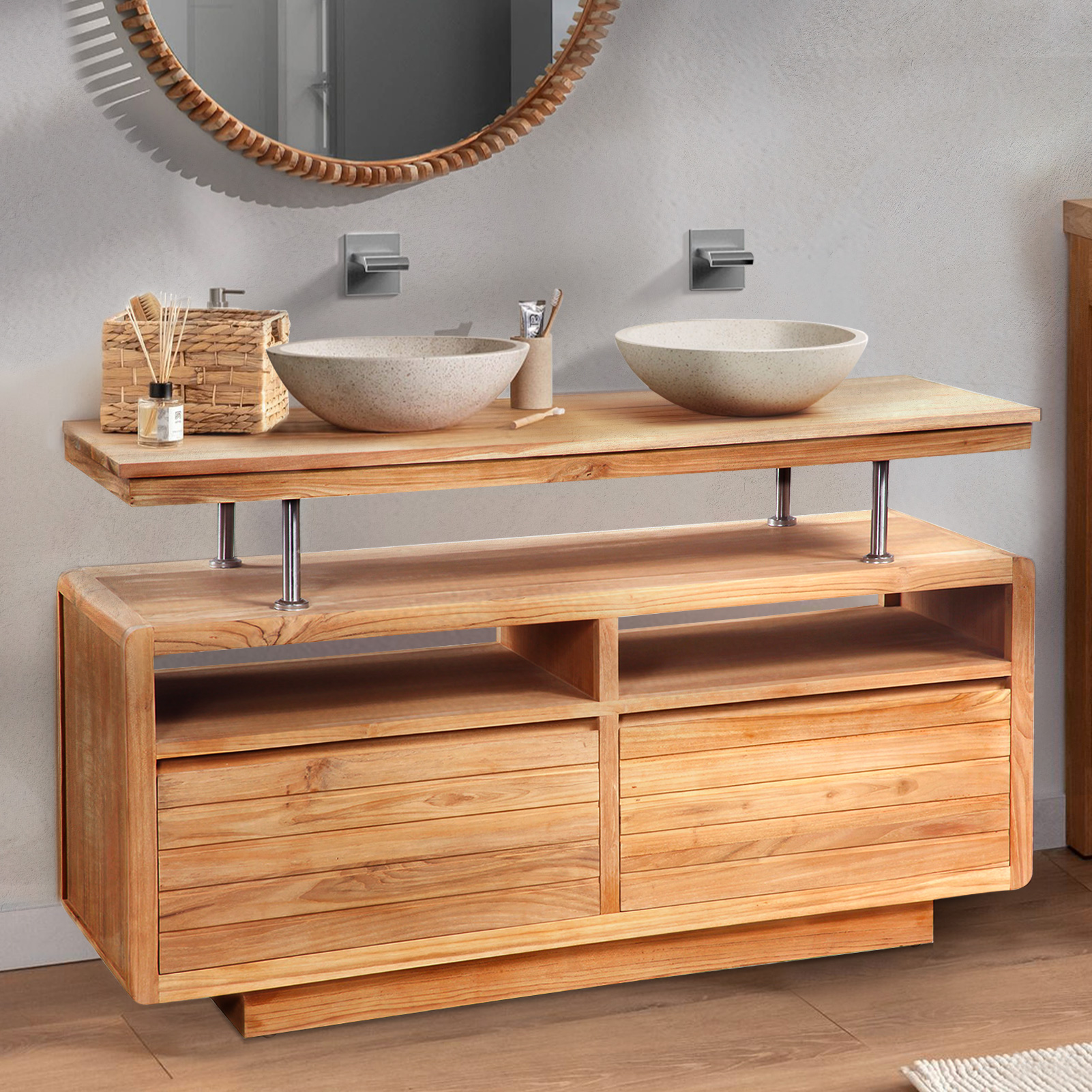 Que vous désiriez une salle de bain design, zen ou moderne, le meuble teck massif pourra vous combler. Il offre une touche chaleureuse à votre intérieur tout en ayant des caractéristiques techniques appréciables. C’est un choix idéal pour votre salle d’eau.